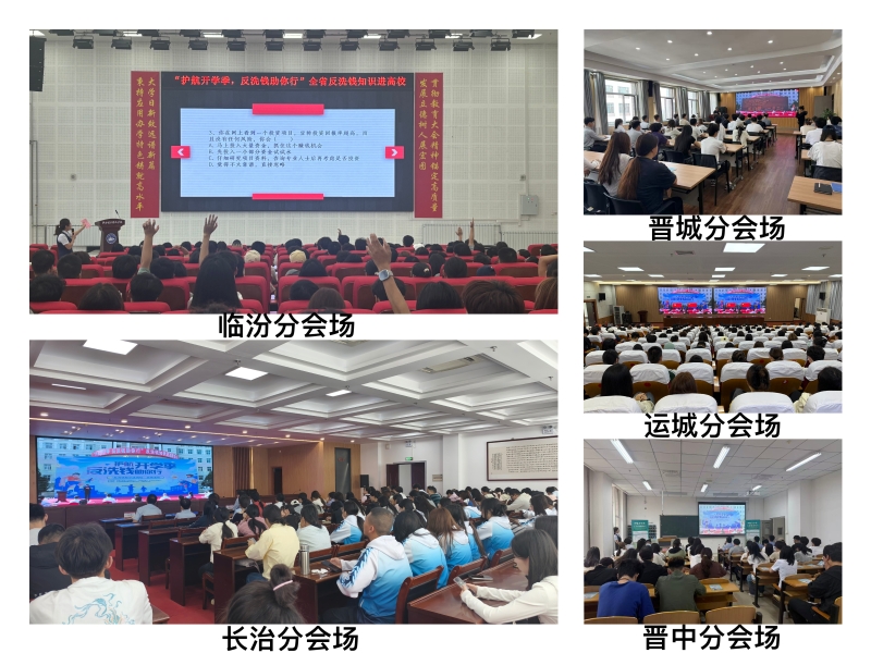 启动仪式以“主会场+分会场+直播”的方式开展。在主会场太原科技大学,各高校代表及1000余名师生齐聚,氛围热烈;在全省各市10所高校分会场,4000余名师生同步观看线上直播。主分会场同频共振,共享反洗钱知识。